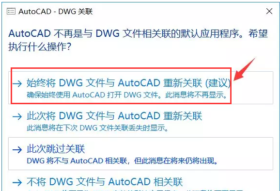 如果出現(xiàn)DWG關(guān)聯(lián)提示,點擊第一個關(guān)聯(lián)即可;