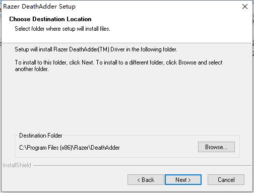 3、選擇雷蛇鼠標(biāo)驅(qū)動安裝位置,您可以點(diǎn)擊【browse】在打開的窗口中自行選擇軟件安裝位置,選擇完成點(diǎn)擊【next】。