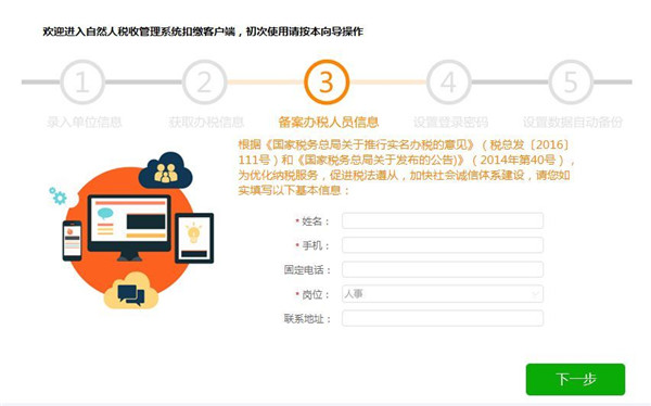 本步驟是對(duì)辦稅人員信息在稅局進(jìn)行備案,請(qǐng)按要求真實(shí)填寫(xiě)。