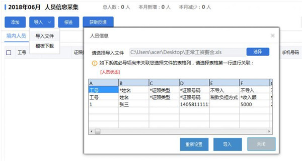當(dāng)本單位人員信息較多時(shí),可以使用批量導(dǎo)入功能。把人員信息填寫(xiě)到Excel中,一次性導(dǎo)入軟件。