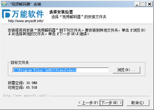 4、繼續(xù)安裝進入到視頻解碼器安裝路徑設置界面,在這界面里我們需要單擊【瀏覽】開始設置,設置時小編建議大家設置在除C盤以外的目錄下。設置完單擊【下一步】繼續(xù)安裝。