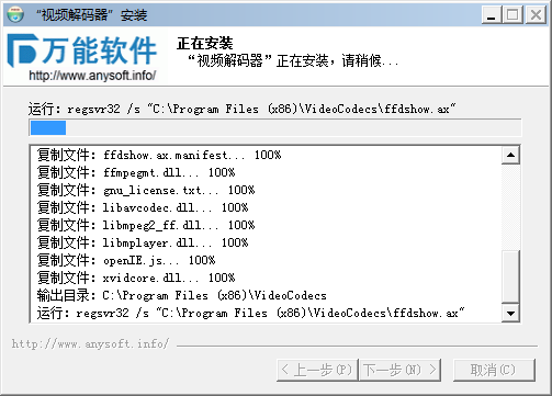 7、以上信息都設置完畢進入到視頻解碼器的安裝進入條界面,在這個位置我們可以看到視頻解碼器的安裝信息正在逐步加載,我們耐心等其安裝完即可。
