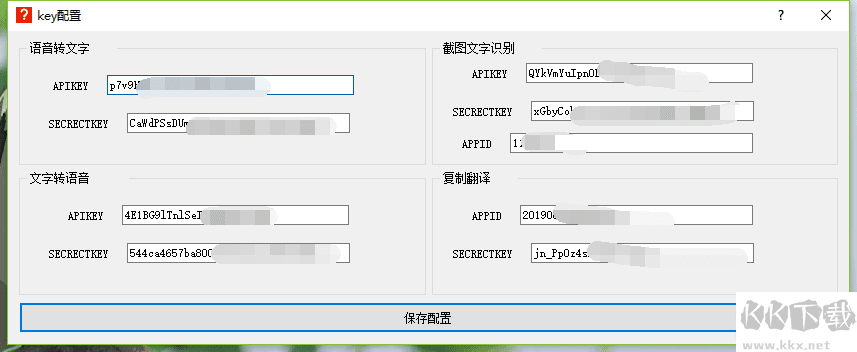 2、主界面參數(shù)配置,自己動手,輸入百度AI的各種接口的key。各種key的獲得方法免費,只不過注意免費次數(shù),不過百度免費次數(shù)給的肯定夠用了。