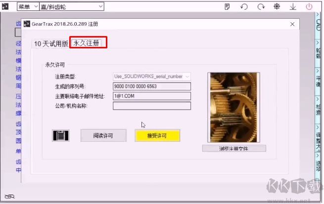 3、然后運(yùn)行GearTrax_zh-CN.exe,然后打開(kāi)軟件,復(fù)制生成的序列號(hào);