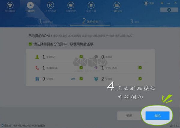 簡(jiǎn)易的向?qū)?,輕松一點(diǎn),即可刷機(jī)。