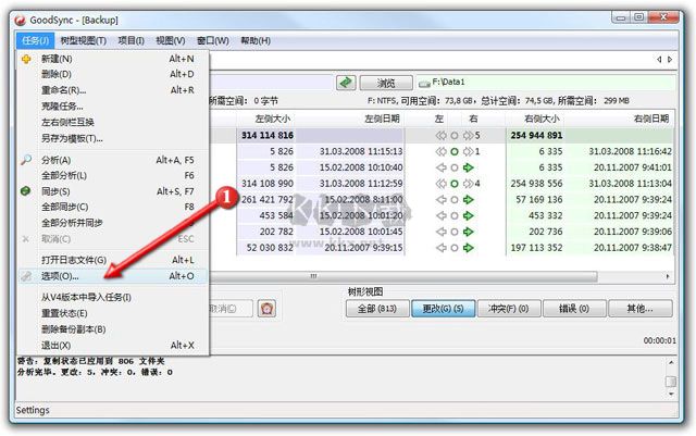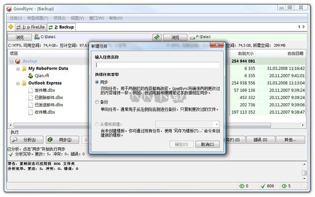 1、啟動 GoodSync 之后,選擇 任務 》 新建。