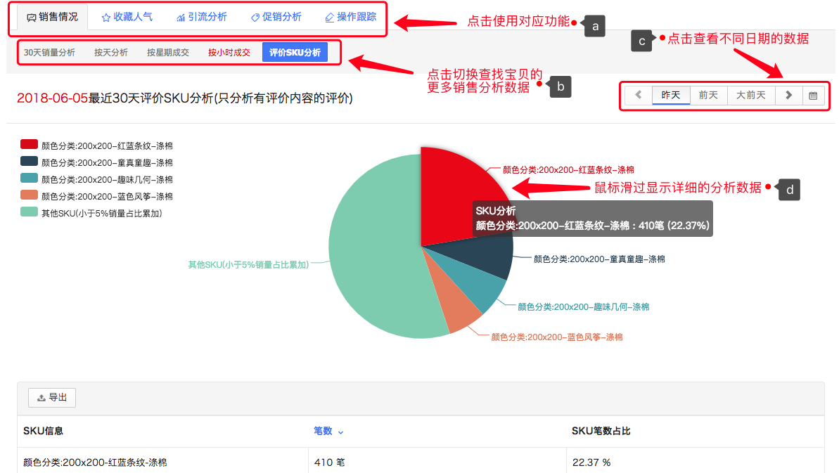 d. 鼠標滑過查看詳細的寶貝數(shù)據(jù)分析