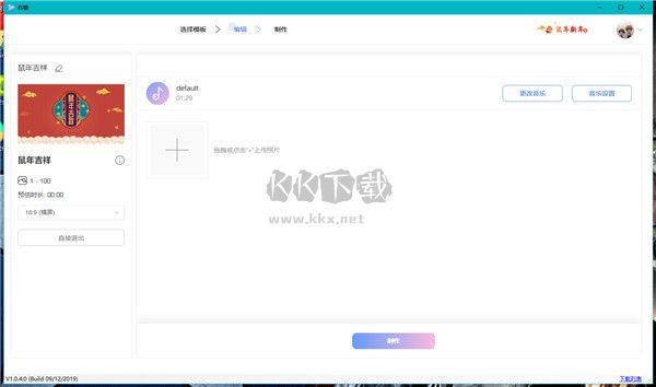 2、上傳照片、背景音樂(lè)、編輯文字內(nèi)容。