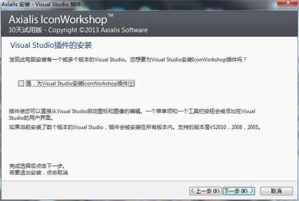 5、詢問是否要安裝IconWorkshop插件,可自定義選擇,完成點擊下一步