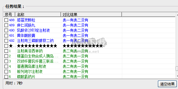 舉例: 表一中有表頭“藥品項(xiàng)目”,其中內(nèi)容為:“創(chuàng)可貼”,“碘伏”,“山楂丸”。表二中有表頭“藥品名稱”,其中內(nèi)容為:“碘伏”,“創(chuàng)可貼”,“棉簽”。本功能可以篩選出兩表中的不同之處,并生產(chǎn)報(bào)告表單。如:“山楂丸:表一有表二沒(méi)有”,“棉簽:表二有表一沒(méi)有”
