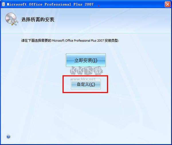 安裝office2007時(shí)可進(jìn)行自定義的安裝,點(diǎn)擊“自定義(見圖一)”即可。在自定義的安裝界面中包含3個(gè)選項(xiàng)卡,分別為:安裝選項(xiàng)(見圖二)、文件位置(見圖三)和用戶信息(見圖四)三部分。