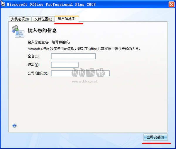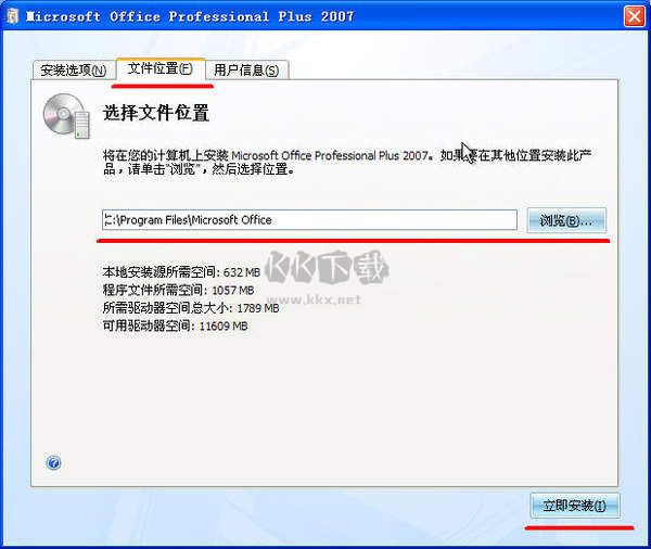 在任意一個(gè)選項(xiàng)卡下都可點(diǎn)擊“立即安裝”開始o(jì)ffice2007的安裝。