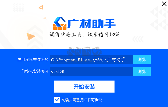 1.從本站下載廣材助手,雙擊進(jìn)入安裝向?qū)В瑔螕?ldquo;開始安裝”