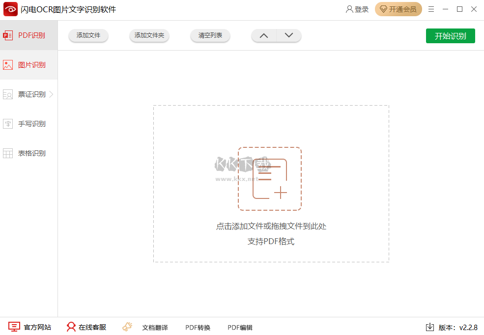 1、雙擊打開閃電OCR圖片文字識別軟件后,選擇“PDF識別”功能。