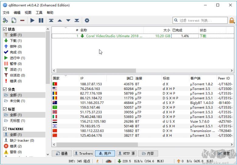 qBittorrent中文版是一款免費(fèi)開源的輕量型BT客戶端軟件,功能非常強(qiáng)大,也是很多BT愛好者喜歡使用的一款工具,它可以在幾乎所有的系統(tǒng)上運(yùn)行,支竺BT種子搜索、磁力鏈接,私人種子,分布式散列表(DHT)、對(duì)等交換協(xié)議(PEX)、本地對(duì)等發(fā)現(xiàn)(LSD)、qBittorrent支持加密鏈接支持IP過(guò)濾,兼容IPv6,UPnP/natp-pmp端口轉(zhuǎn)發(fā)支持,其簡(jiǎn)單易用一度受到用戶的喜愛。