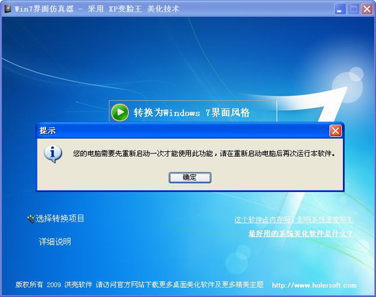 重啟電腦之后,如果想要回到XP主題,那么再次運行本軟件,點擊還原回Windows XP界面即可。