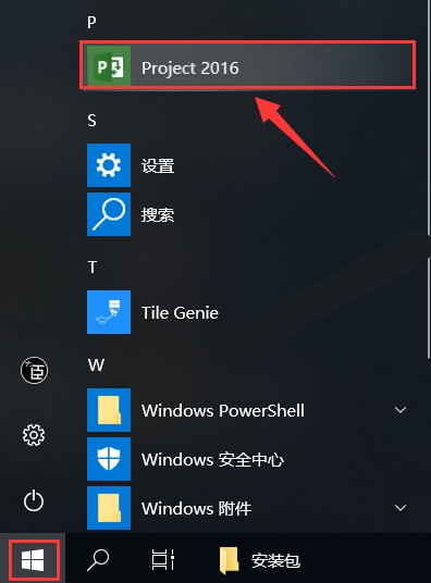 8.在開始菜單,選中【Project 2016】用鼠標(biāo)往桌面拖動(dòng)即可創(chuàng)建桌面快捷方式。