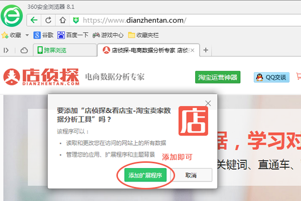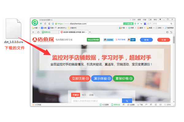 1、下載店偵探看店寶插件后,將文件拖入到要安裝的瀏覽器中。