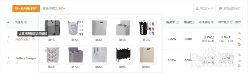 比如laundry bin的詞根和clothes hamper看似不相關(guān),但將鼠標懸停在關(guān)鍵詞上即可看到這兩個關(guān)鍵詞下排名前10的產(chǎn)品幾乎重疊,就可以說明它們指向同一個細分市場(或同一受眾人群)。