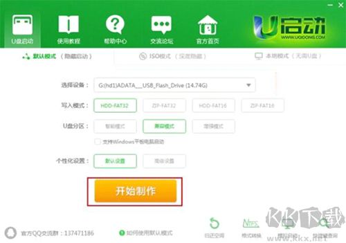備注:關(guān)于寫入模式和U盤分區(qū),U啟動為您推薦的為較佳模式,若無特別需求,您無需做任何改動。