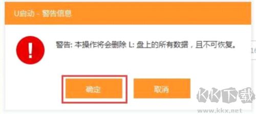 3.此時(shí),系統(tǒng)會彈出警告提示會清除u盤上所有的數(shù)據(jù),確認(rèn)u盤中沒有重要文件之后點(diǎn)擊“確定”開始制作。(如有重要文件,請先將U盤的文件復(fù)制到其他計(jì)算機(jī)上再開始制作);如圖所示: