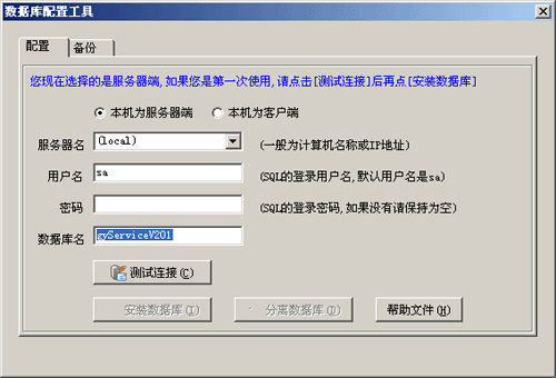 如提示安裝數(shù)據(jù)庫失敗,如服務(wù)器一欄為空,請手工錄入 (Local) ,再嘗試一下安裝數(shù)據(jù)庫。