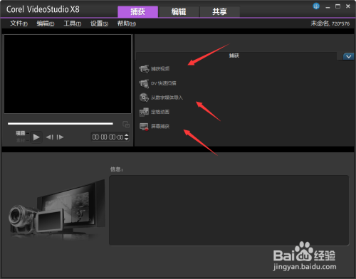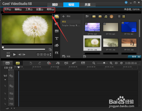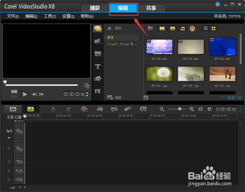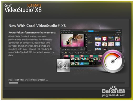 5、打開安裝完成的Corel VideoStudio Pro X8,默認(rèn)為英文界面
