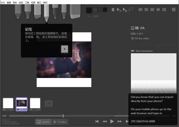 并且,在繪制成功后,它還支持導(dǎo)入到Premiere,F(xiàn)inal Cut 等主流軟件以及PDF,GIF 等格式,便于用戶的分享。簡而言之,這款十分優(yōu)秀的storyboarder不論是從事為電影制作者、藝術(shù)家、亦或者是作家而言,這款軟件都可起來十分重要的作用。歡迎感興趣的朋友免費下載體驗。