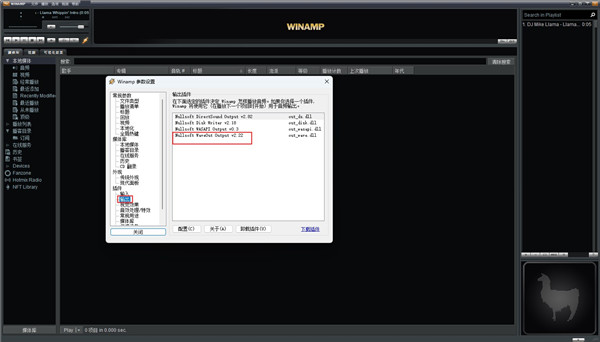 2、主菜單下選擇Options→Preferences→Plug-ins→Output項(xiàng),再在右側(cè)窗口選擇:Nullsoft Disk Writer Plug-in v2.0c(x86)[out_disk.dll]