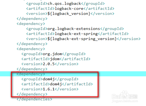 我們在使用DOM4J進(jìn)行XML文件的解析操作之前需要獲取DOM4J的開發(fā)包,我們在項(xiàng)目中使用maven管理工具,因此在pom.xml中添加如下的引用即可。