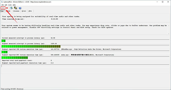 3、LatencyMon的設(shè)計(jì)考慮到需要評(píng)估計(jì)算機(jī)播放實(shí)時(shí)音頻的能力的用戶,并且當(dāng)您想要避免音頻輸出中的咔嗒聲和砰砰聲時(shí),它們會(huì)派上用場。