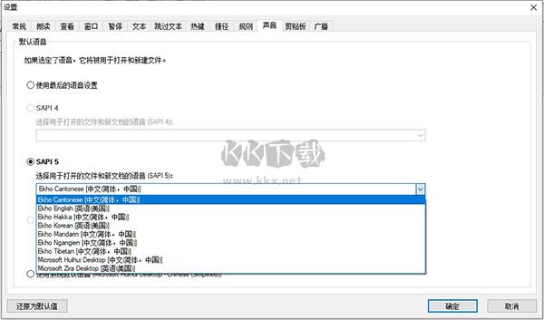 3、需要切換balabolka的聲音的話,可以通過【選項】-【設(shè)置】-【聲音】來切換即可。