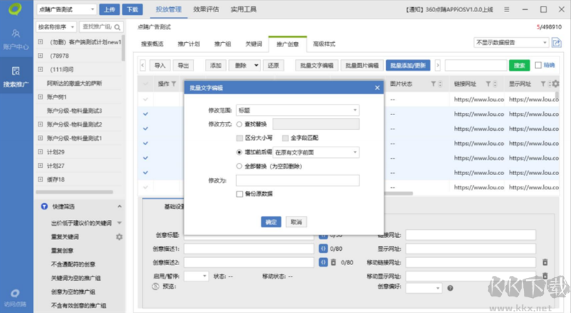 2)支持對(duì)產(chǎn)品線、推廣計(jì)劃、推廣組、推廣創(chuàng)意、關(guān)鍵詞層級(jí)進(jìn)行批量編輯。