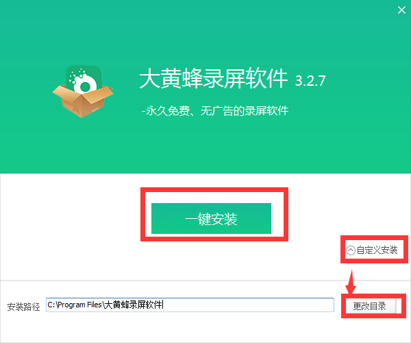 1.將kkx分享的壓縮包解壓出來,雙擊打開大黃蜂錄屏軟件.exe開始安裝,點擊【一鍵安裝】;