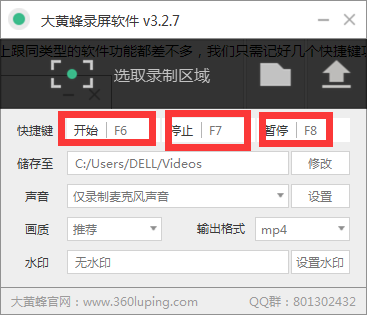 4.下面需要記住的是快捷鍵,這樣子就可以不用切出錄屏軟件直接進行操作: