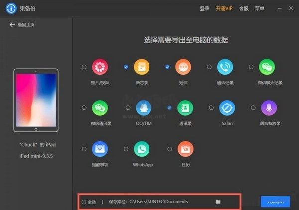 選擇想要導(dǎo)出的數(shù)據(jù)類型,選擇保存路徑,點(diǎn)擊【開始導(dǎo)出】就可以完成批量導(dǎo)出啦。