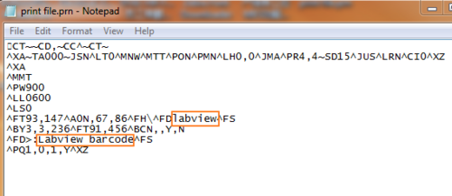 用文本文檔打開該PRN文件,可以看到我們在ZebraDesigner中編輯的文本和條碼內(nèi)容