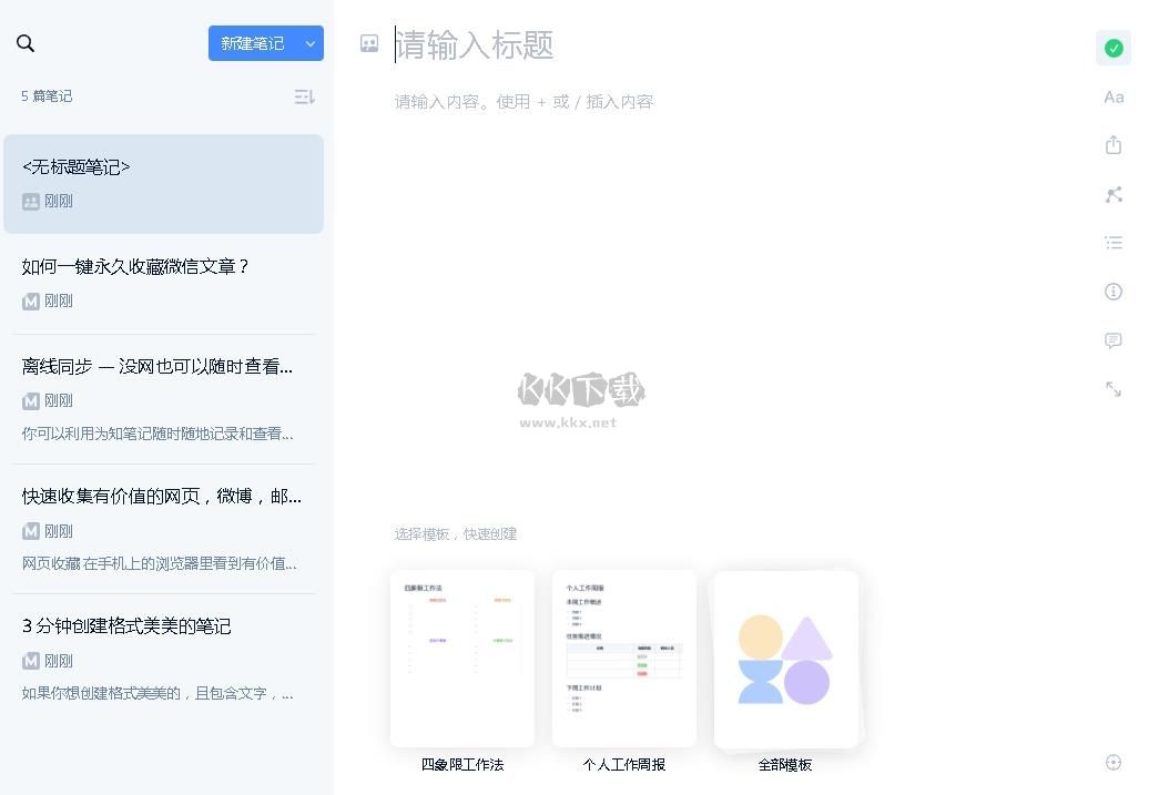 為知筆記電腦版:一款強(qiáng)大的筆記軟件,在這款軟件里面,多種設(shè)備它都支持,如電腦、手機(jī)、網(wǎng)頁(yè)上等等都可以進(jìn)行編輯和查找,軟件界面清爽,使用便捷,功能強(qiáng)大,它還支持云端存儲(chǔ),功能豐富滿足用戶的多種需要,為大家?guī)?lái)極大的變了,對(duì)此感興趣的用戶快來(lái)kk下載吧!