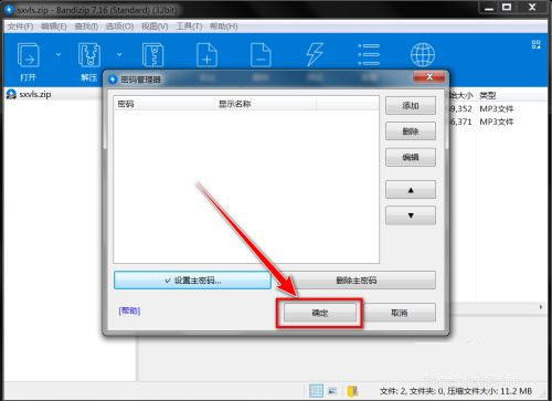 5、返回“密碼管理器”窗口,點(diǎn)擊“確定”按鈕,再重啟Bandizip即可。