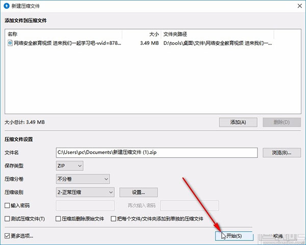 7、選擇好壓縮級(jí)別之后,我們就可以點(diǎn)擊界面右下角的開(kāi)始按鈕了,點(diǎn)擊這個(gè)開(kāi)始按鈕即可開(kāi)始視頻的壓縮操作;