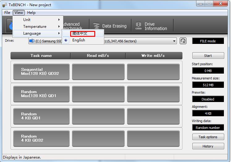 如下圖,打開TxBENCH之后,點擊view——language 簡體中文