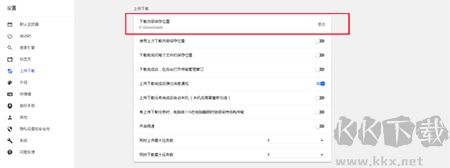 5.在【上傳下載】中,點(diǎn)擊【更改】即可自定義更改瀏覽器子安在文件位置