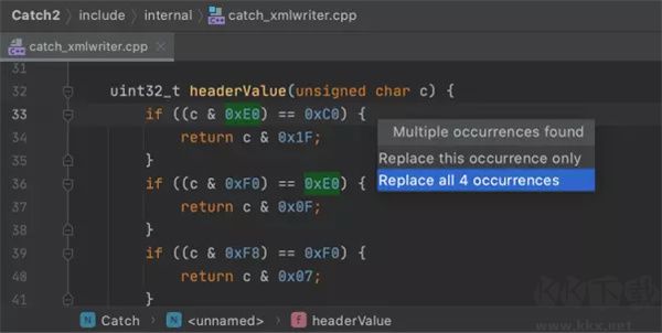 立即生成大量樣板代碼。 使用簡單的快捷鍵重寫和實現(xiàn)函數(shù)。 生成構(gòu)造函數(shù)和析構(gòu)函數(shù)、getter 和 setter 以及相等、相關(guān)和流輸出運算符。 使用語句包裝代碼塊,或者從用法生成聲明。 創(chuàng)建自定義活動模板以在整個代碼庫中重用典型代碼塊,從而節(jié)省時間并使樣式保持一致。