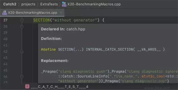 檢查脫字符號下的代碼即可了解任何信息:函數(shù)簽名詳細信息、審查評論、預(yù)覽 Doxygen 樣式文檔、檢查針對缺少顯式類型的符號推斷出的類型,以及查看正確格式化的最終宏替換。