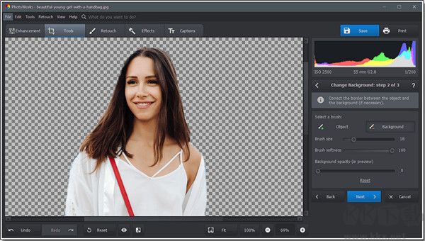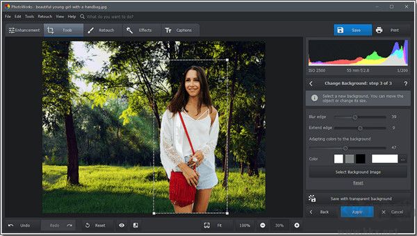 啟動(dòng) PhotoWorks,導(dǎo)入照片以添加背景并切換到工具選項(xiàng)卡。從軟件工具包中,選擇更改背景