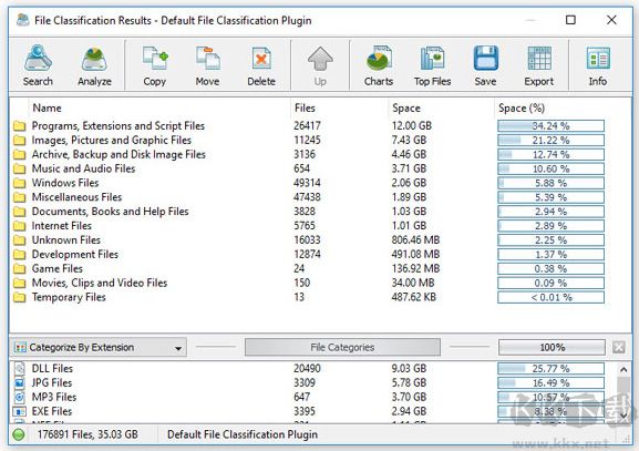 DiskBoss能夠掃描磁盤、網(wǎng)絡(luò)共享和NAS存儲(chǔ)設(shè)備,并使用多種不同類型的文件分類插件對(duì)文件進(jìn)行分類。DiskBoss自動(dòng)識(shí)別3500多種類型的文件,并允許用戶瀏覽分類文件層次結(jié)構(gòu),生成各種類型的餅圖,保存文件分類報(bào)告,對(duì)文件類別執(zhí)行文件管理操作,并根據(jù)用戶定義的規(guī)則對(duì)文件進(jìn)行物理重組和政策。