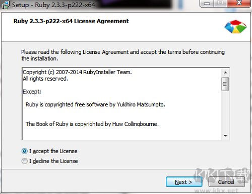 1.在kk下載站下載Ruby最新版安裝包,雙擊“exe”文件
