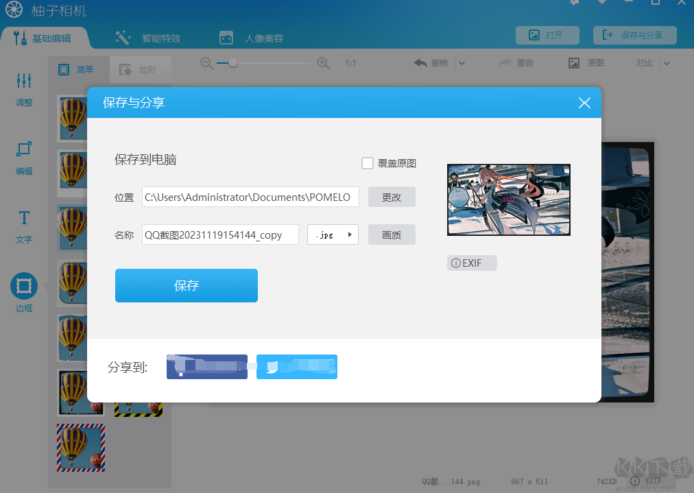 7、編輯完成之后點擊右上角的保存到文件夾即可。