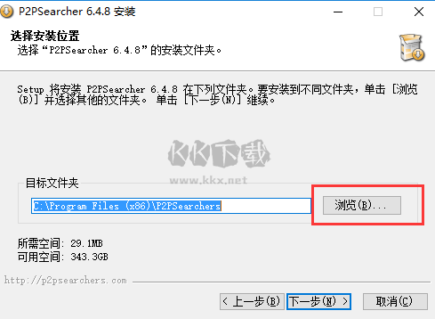 三、可以選擇P2pSearcher綠色版安裝位置,并點(diǎn)擊【下一步】。