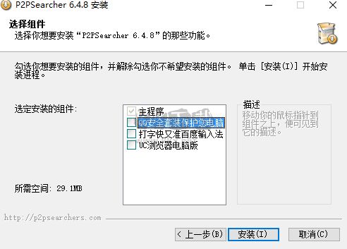 四、去掉不必要的捆綁安裝,點(diǎn)擊【安裝】開始安裝P2pSearcher綠色版軟件。